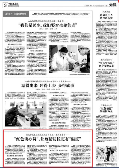 为有效掌握疫情期间职工思想状态,关注职工身心健康,该车间党支部组成党员谈心小组,包保各个班组,疏导职工思想。
