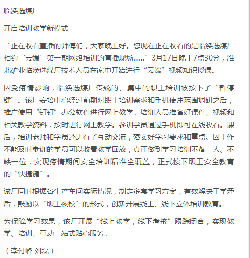 《中国煤炭报》:po18 临涣选煤厂开启培训教学新模式
