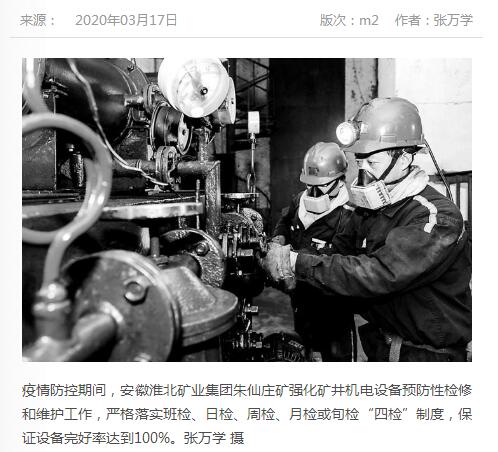 《中国煤炭报》:po18 朱仙庄矿防疫情保安全生产