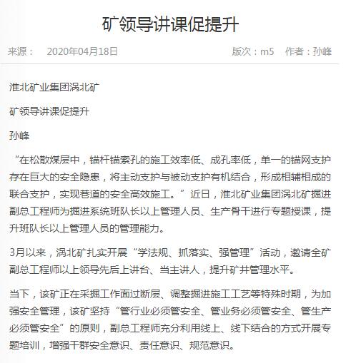 《中国煤炭报》:po18 涡北矿矿领导讲课促提升