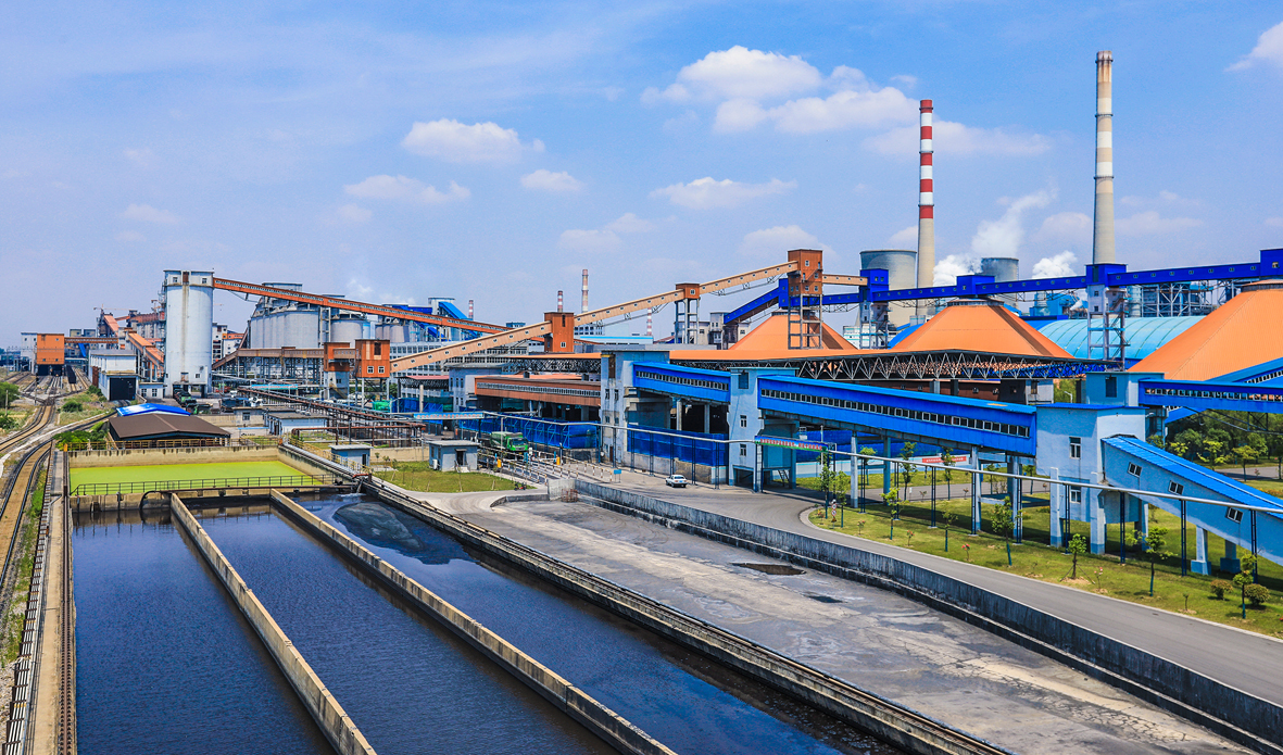 6æœ�3日,记者在安徽淮北临涣选煤厂采访,看到厂区在è“天碧è‰é—´å±•现美景ã€�