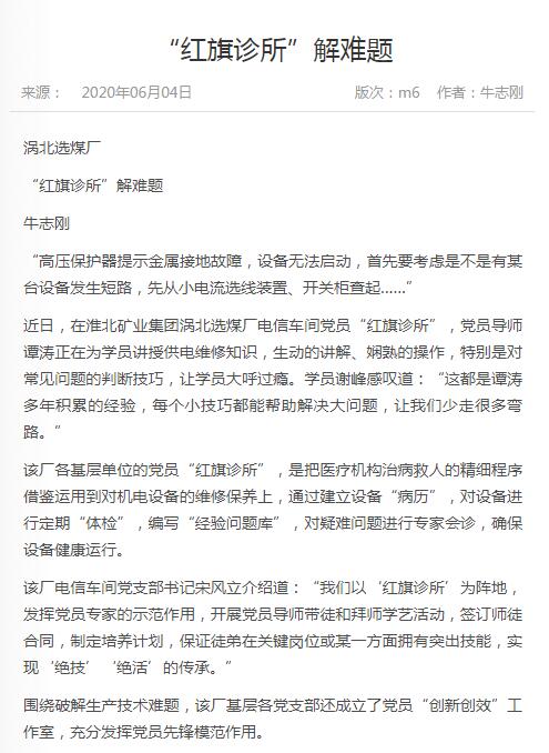 《中国煤炭报》:po18 涡北选煤厂“红旗诊所”解难题