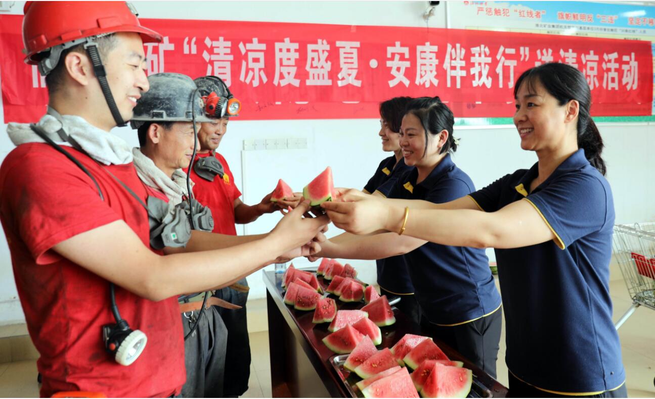 近日,安徽淮北进入高温模å¼ã€‚淮北矿业集团å„级工会积æžç¹å¤‡é˜²æš‘陿¸©ç‰©èµ„,打好高温下安全生产仗,第一时间å¯åŠ¨â€œé€æ¸…å‡‰â€æ´»åŠ¨ï¼Œä¸»åŠ¨å‡ºå‡»ï¼Œå°†æ¸…å‡‰é€åˆ°â€œå‰æ²¿é˜µåœ°â€â€”—采煤井å£ã€‚为奋战在生产一线的èŒå·¥é€åŽ»æ¥è‡ªå·¥ä¼šâ€œå¨˜å®¶äººâ€çš„å…³æ€€ï¼Œè¿›ä¸€æ¥æ¿€å‘了èŒå·¥çš„å·¥ä½œçƒæƒ…和奉献力é‡ã€�
