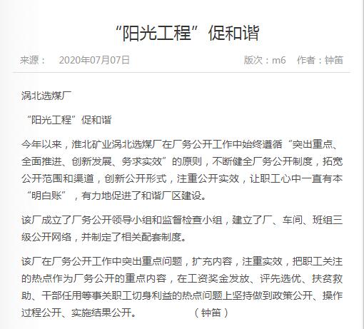 《中国煤炭报》:po18 涡北选煤厂“阳光工程”促和谐