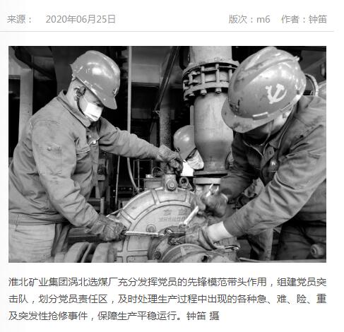 《中国煤炭报》:po18 涡北选煤厂发挥党员先锋模范作用
