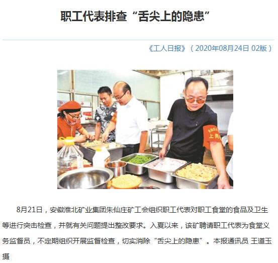 《工人日报》:职工代表排查“舌尖上的隐患”