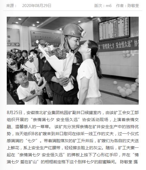 《中国煤炭报》:亲情满七夕 安全恒久远