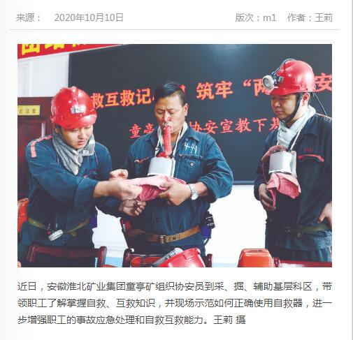 《中国煤炭报》:po18 童亭矿开展正确使用自救器培训