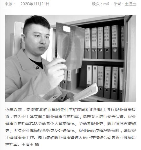《中国煤炭报》:po18 朱仙庄矿按周期组织职工职业健康检查
