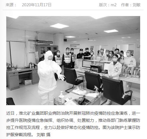 《中国煤炭报》:po18 职业病防治院开展新冠肺炎疫情防控应急演练