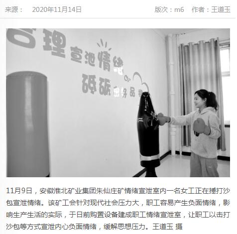 《中国煤炭报》:po18 朱仙庄矿情绪宣泄室缓解职工思想压力
