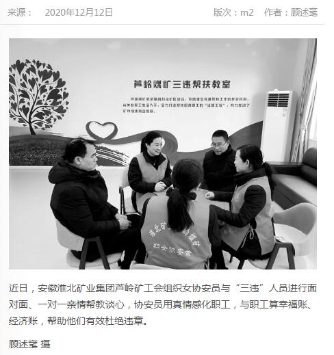 《中国煤炭报》:po18 芦岭矿工会“三违”帮教助安全