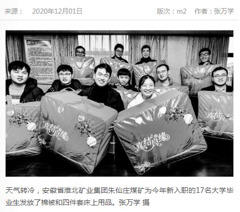《中国煤炭报》:po18 朱仙庄矿关爱新入职大学毕业生