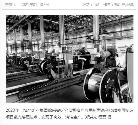 《中国煤炭报》:po18 综采安拆分公司推广应用激光熔覆技术