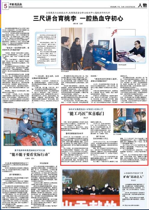 袁店一矿综采二区机电队队长张小宁双喜临门,不仅被评为矿“五好职工”,而且被评为“能工巧匠”。