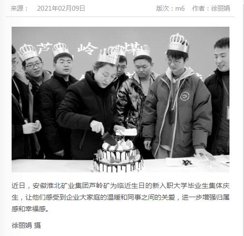 《中国煤炭报》:po18 芦岭矿为新入职大学毕业生集体庆生