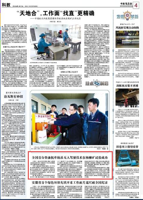 本报讯 经过近半年的精心调试,全国首台柴油机单轨吊无人驾驶技术于近日在安徽po18
