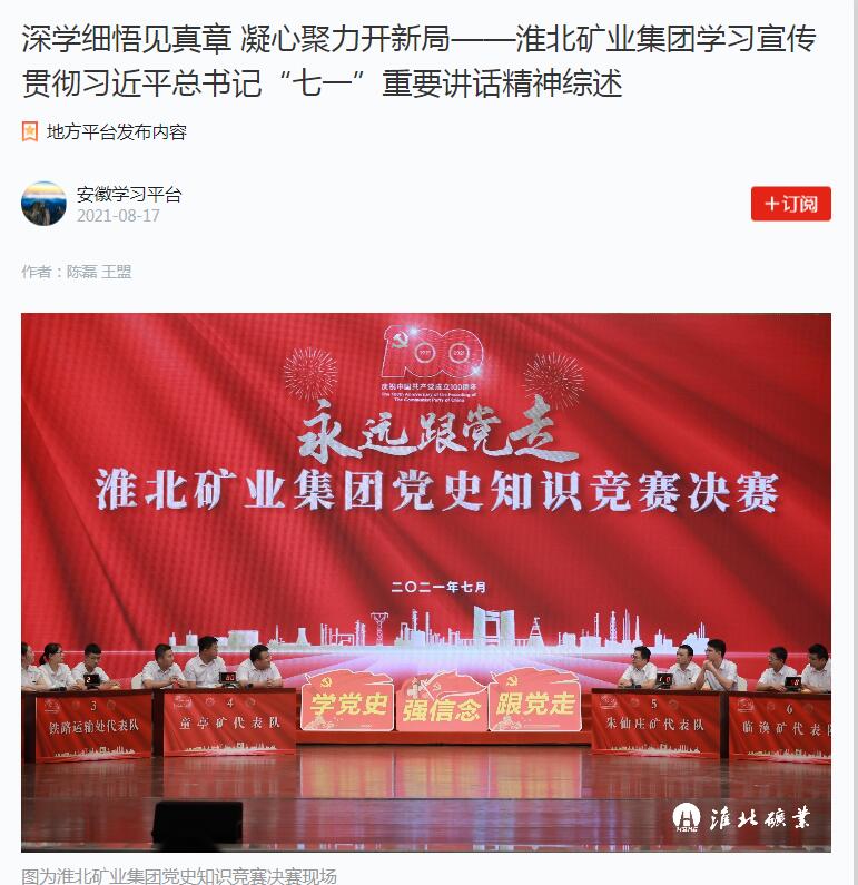 淮北矿业集团积极拓展学习路径,统筹好内宣外宣资源,创新宣传形式,全方位、多层次宣传报道“七一”重要讲话精神,推动学习贯彻走深走实走心�