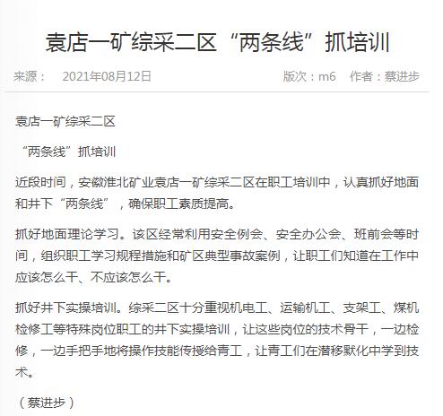 《中国煤炭报》:po18 袁店一矿综采二区“两条线”抓培训