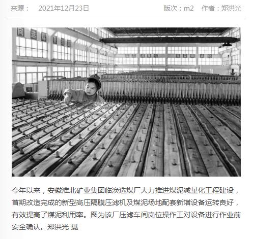 《中国煤炭报》:po18 临涣选煤厂大力推进煤泥减量化工程建设