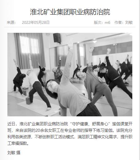 《中国煤炭报》:po18 职业病防治院“守护健康、舒展身心”瑜伽课堂开班