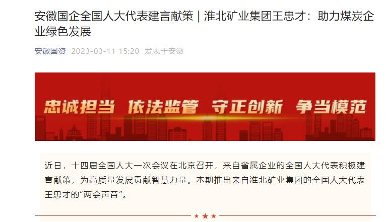 《安徽国资》:安徽国企全国人大代表建言献策 | po18 王忠才:助力煤炭企业绿色发展