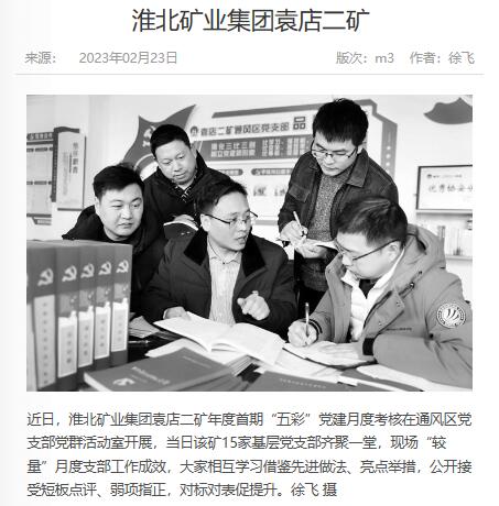 《中国煤炭报》:po18 袁店二矿开展年度首期“五彩”党建月度考核