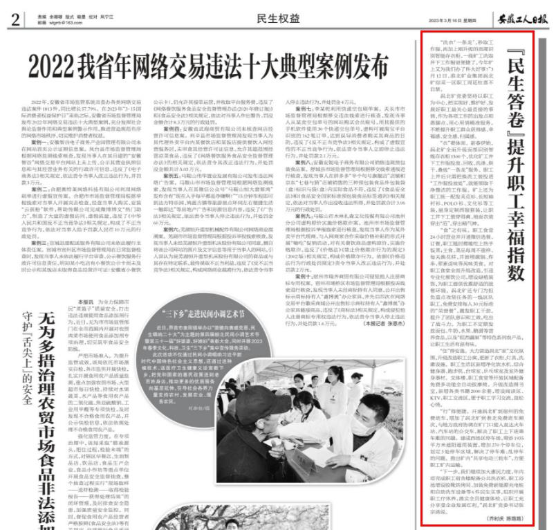 “食”之有味。职工食堂24小时营业并开通微信选餐、订餐,职工随时都能吃上热乎饭菜;主食、菜品每周不重样、每天换花样,并新增碳锅、炸串、荤素卤味等风味美食。对职工食堂全面升级改造,引进专业化餐饮公司,增设绿植装饰,为职工提供优雅舒适的就餐环境。涡北矿还专门为担负重点攻坚任务的一线区队职工,免费安排每人30元标准的“荣誉餐”,激发职工干劲,提升了团队意识和工效,吃出了战斗力。为职工不定期发放面包、牛奶、水果、鹅蛋等营养食品,以及“皖西疆果”等特色系列农产品,让职工生活有滋有味。