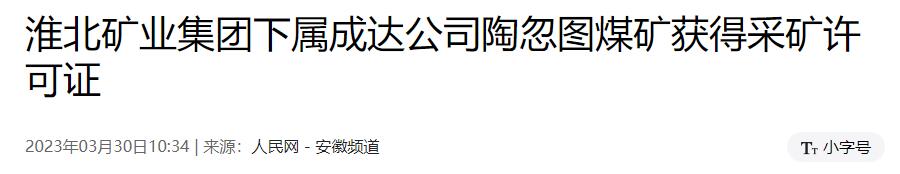 下属成达矿业有限公司颁发了陶忽图煤矿采矿许可证。这标志着po18
