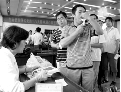 近年来,安徽po18 童亭矿高度重视职业病危害防治工作,每年都坚持为2000多名一线职工进行职业健康体检。图为一线职工在进行肺活量检测。王 莉 摄
