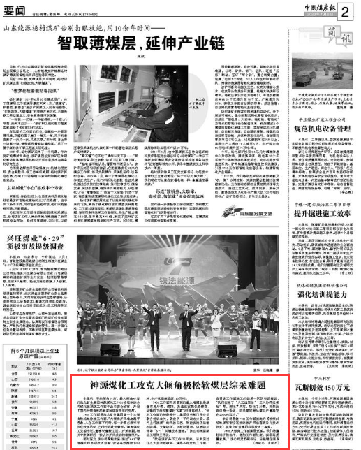 神源煤化工攻克大倾角极松软煤层综采难题