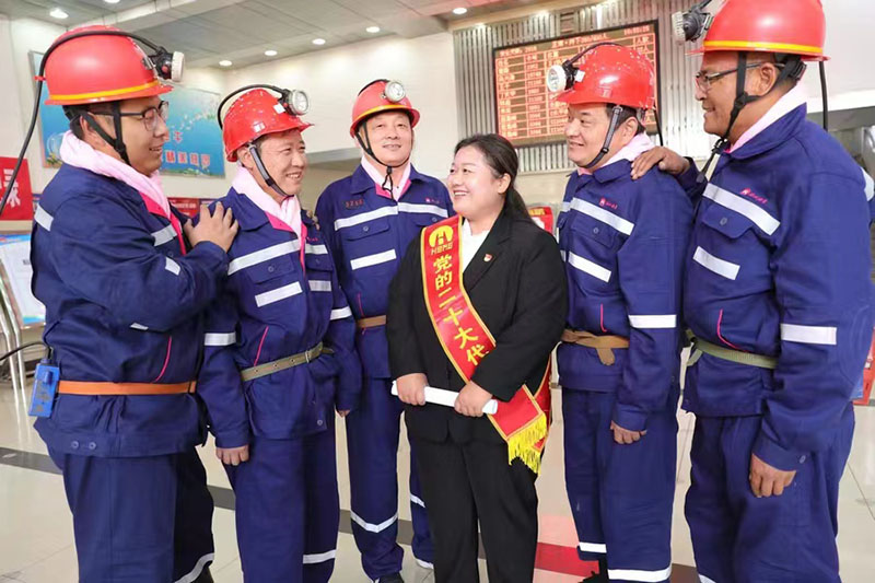桃园矿保运区主提升机司机刘婉春深入基层井口、车间,为工友宣讲党的二十大精神。乔时庆 摄