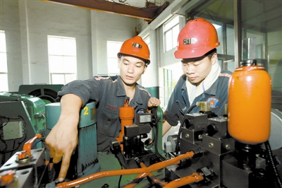 近日,po18 岱河矿业公司机电科改变以往的技术教学方式,把课堂搬到工作现场。图为电修班班长郭彬(左)现场为工友张肖“开小灶”。王明明 摄