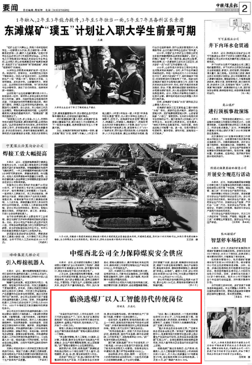 袁明朋介绍,目前,临涣选煤厂原煤配返和洗选过程的12个岗位实现了无人值守、远程操控,采、监、诊、控、管全部实现无人作业。