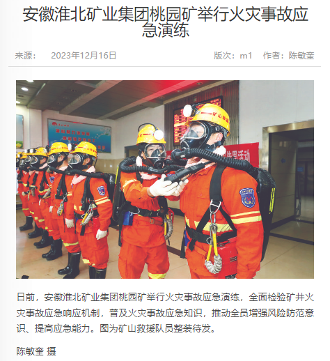 《中国煤炭报》:桃园矿举行火灾事故应急演练