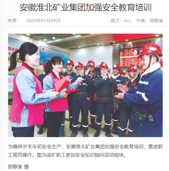 《中国煤炭报》:po18 加强安全教育培训