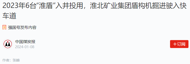 将在袁店一井煤矿、朱仙庄煤矿、邹庄煤矿、涡北煤矿等新增6条盾构作业线,加上接续2023年已运行的盾构作业线,2024年该集团将有17条盾构作业线施工。