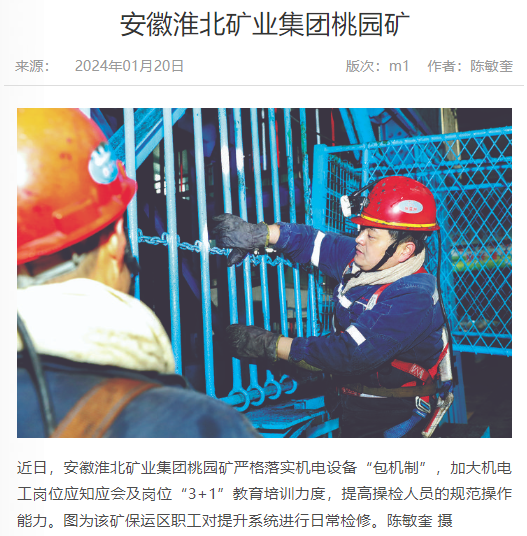 《中国煤炭报》:桃园矿严格落实机电设备“包机制”