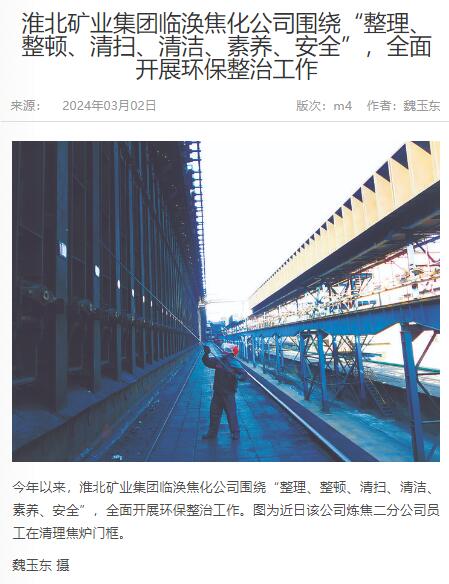 《中国煤炭报》:临涣焦化公司全面开展环保整治工作