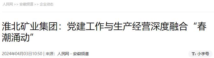 ç«™åœ¨æ‰“é€ å›½å†…ä¸€æµåŒåƒäº¿ä¼ä¸šçš„æ–°èµ·ç‚¹ä¸Šï¼Œæ·®åŒ—矿业集团党委将以高质é‡å…šå»ºå¼•领ä¿éšœé«˜è´¨é‡å‘展,在全é¢å»ºè®¾å›½å†…一æµå¤§åž‹èƒ½æºåŒ–工集团的新å¾ç¨‹ä¸Šï¼Œå¼€åˆ›æ–°å±€é€€å±•现新作为,奋力谱写新时代党建工作与生产ç»è¥æ·±åº¦èžåˆã€å…¨é¢æå‡å…šå»ºå·¥ä½œè´¨æ•ˆçš„æ–°ç¯‡ç« 。(王盟 乔时庆)