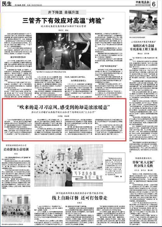 “吹来的是习习凉风,感受到的却是浓浓暖意。”该矿综掘一区队长张昌高兴地说,自从井下“空调”开起来以后,明显感觉凉爽多了,身体舒服了,大家干活儿的劲头更足了。