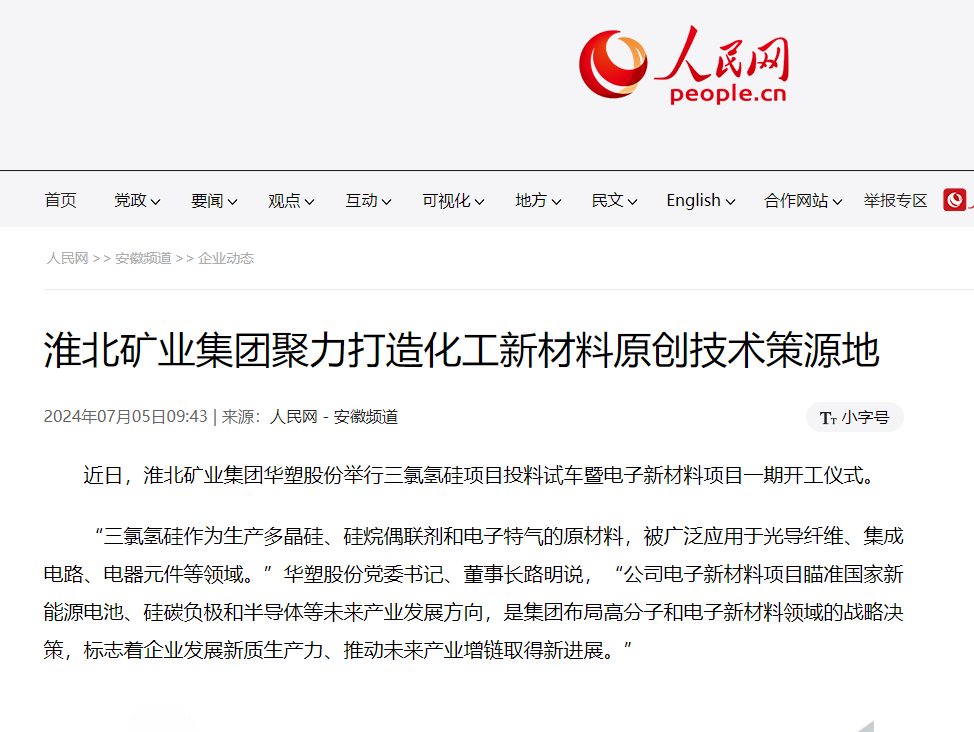近日,淮北矿业集团åŽå¡‘è‚¡ä»½ä¸¾è¡Œä¸‰æ°¯æ°¢ç¡…é¡¹ç›®æŠ•æ–™è¯•è½¦æš¨ç”µåæ–°ææ–™é¡¹ç›®ä¸€æœŸå¼€å·¥ä»ªå¼ã€�