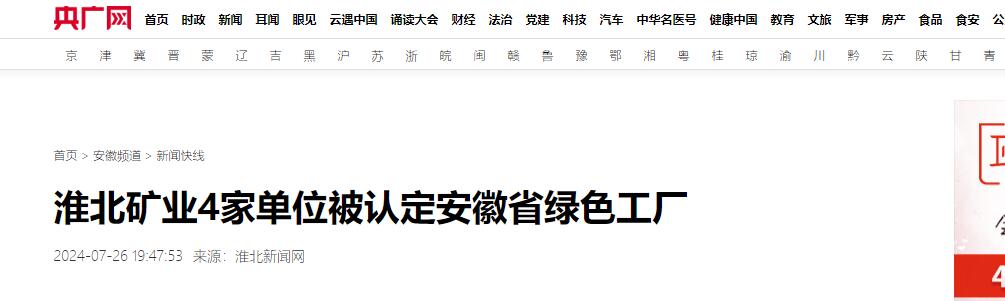 近日,涡北选煤厂、淮北选煤厂、碳鑫科技、华塑股份4家单位被认定安徽省绿色工厂。这是po18