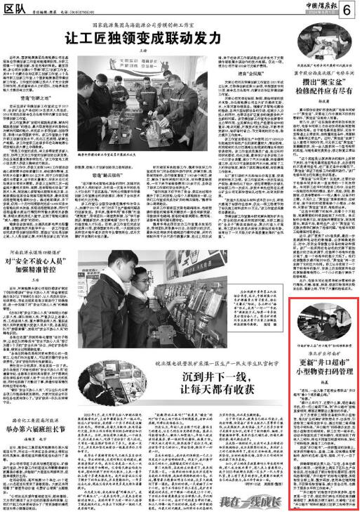 “‘井口超市’的物资不仅种类多样,型号更是一目了然,现在我们再也不用在库房翻箱倒柜了,真是既方便又省时,太棒啦!”正在“井口超市”领料的掘进三区职工张裕芳兴奋地说。(杨晨)