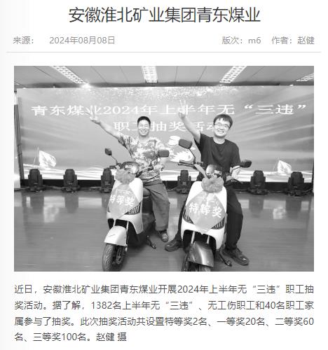 《中国煤炭报》:青东煤业开展无“三违”职工抽奖活动