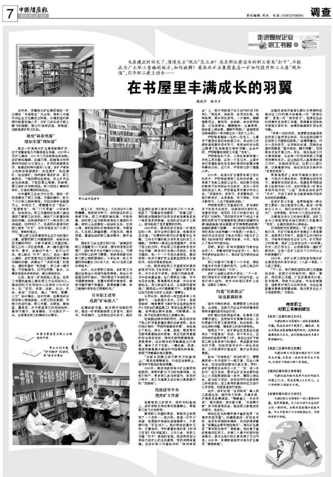 ●建议职工书屋增加一些儿童类的书籍。每年寒暑假,不少矿工的子女会到矿上住一段时间,如果书屋能增加这类书籍,可以丰富职工子女的假期生活,同时促进亲子共读。