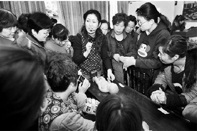2月29日,在安徽po18 淮北选煤厂社区中心内,保育专家正在为该厂离岗、内退女工讲解新生儿护理知识。面对煤炭市场下行压力,淮北选煤厂一些技术含量低、收入少的女工提前离开岗位。该厂工会积极为她们搭建创业就业学习平台,开展了“学创业技能,做转型职工”月嫂培训活动。韩晓兵 摄