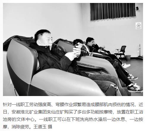 《中国煤炭报》:朱仙庄矿文体中心添置多功能按摩椅服务职工