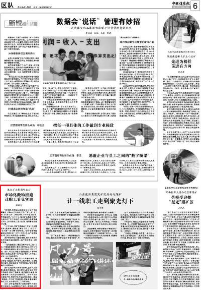 该矿还充分利用市场化政策,盘活人力资源,提高经营效益。结合实际,该矿成立了支护品维修、风动工具维修、综采掘配件维修、弱电维修等10支专业化维修团队。每周下发加工维修计划,确保计划及任务落实到位。建立“周通报、月兑现”考核机制,按维修量核算市场化工资,充分调动职工工作积极性。