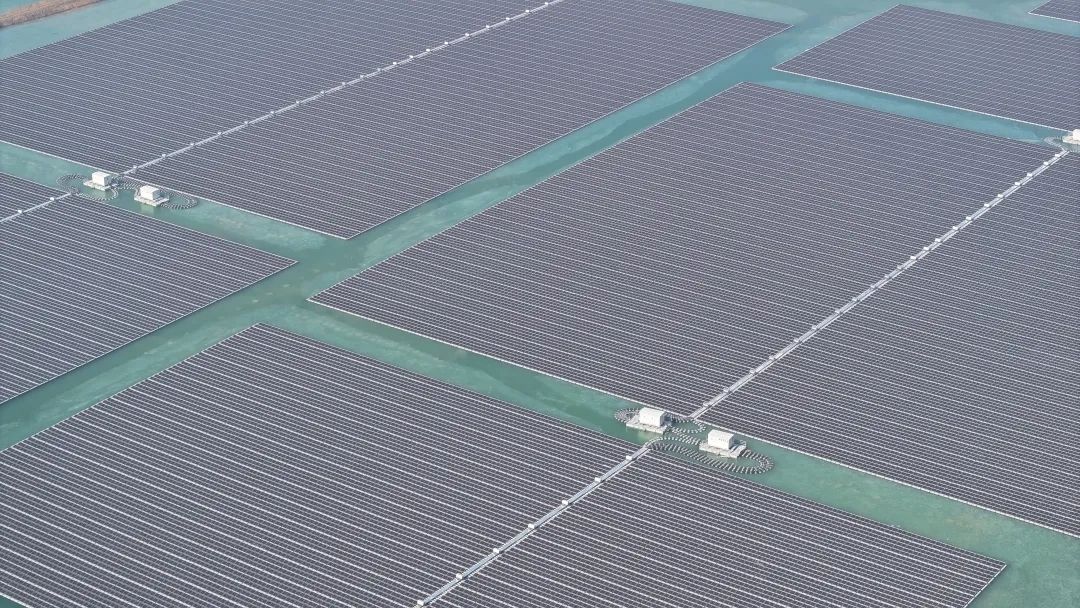 7�28日,在淮北矿业集团芦岭矿东风井场地,一排排整齐排列的蓝色光伏板在骄阳下熠熠生辉,成为一道亮丽的风景。光伏板下方,电表不断跳涨的数字记录着太阳能向电能的转化量�